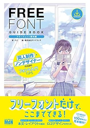 作例は同人誌・漫画・小説制作などが中心ですが、デザインに通じる内容が多く、一部のフォントは特典としてダウンロードして活用できます。