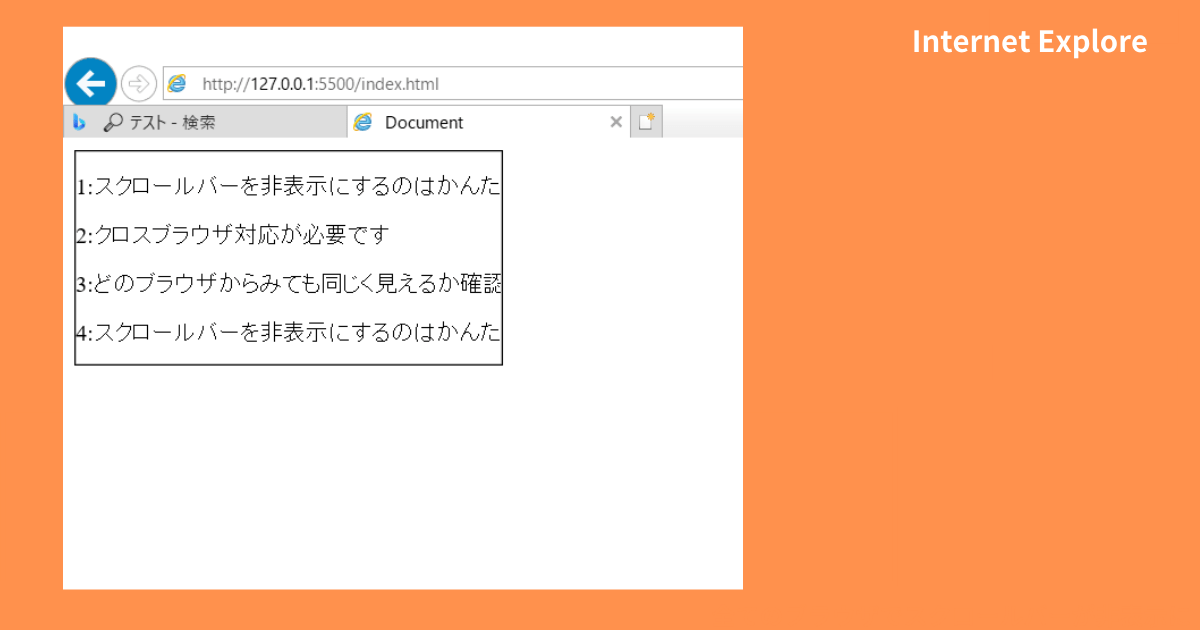 主要な4つのブラウザで、いずれもスクロールバーを非表示にできました。