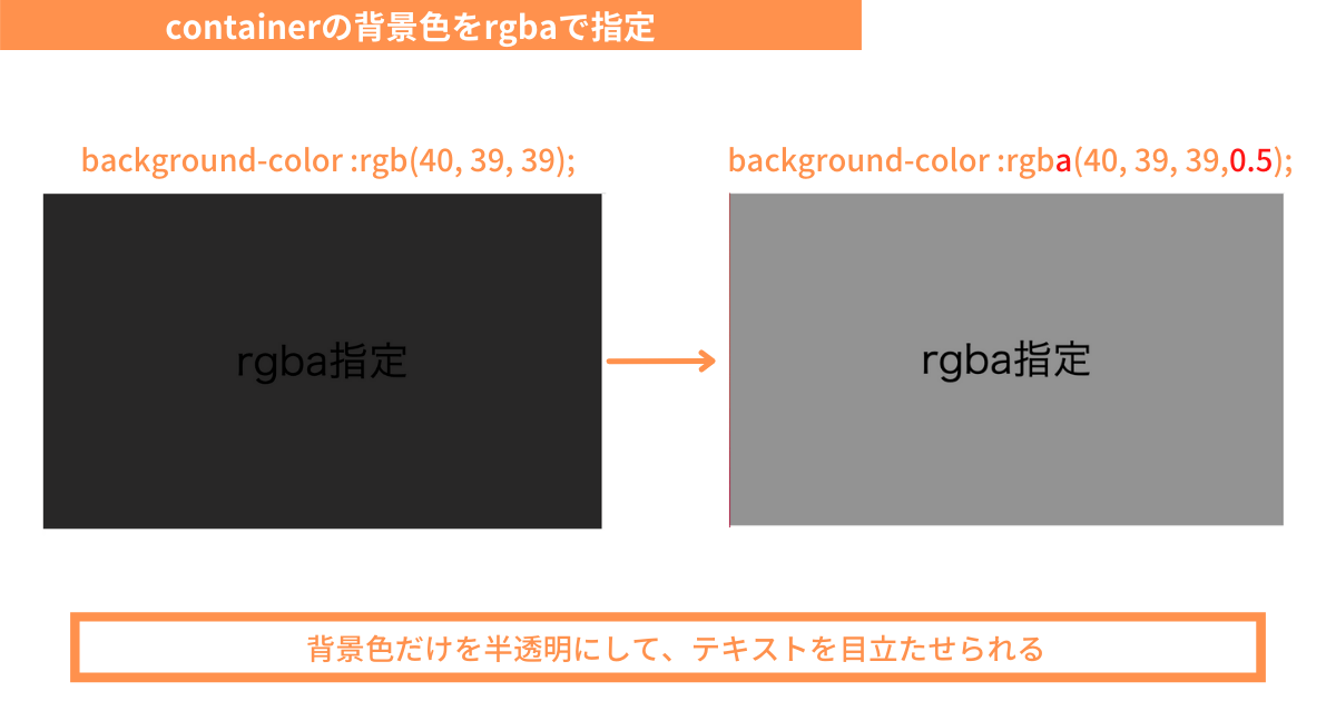 rgba指定は子要素に影響を与えることなく、要素を透明化できるメリットがあります。