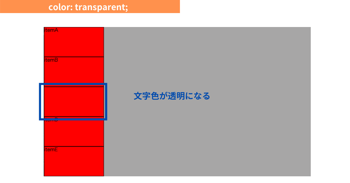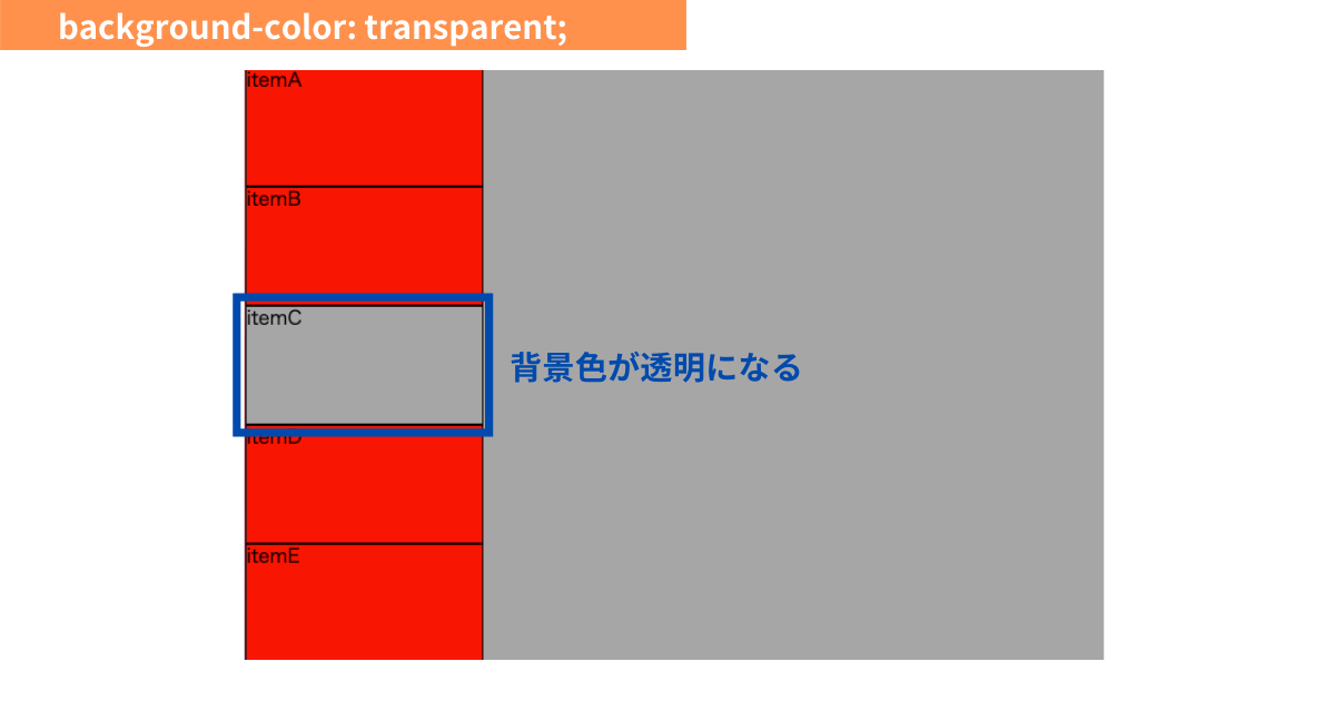 background-color: transparent;/*3番目の要素(itemC)のみ背景色を透明*/